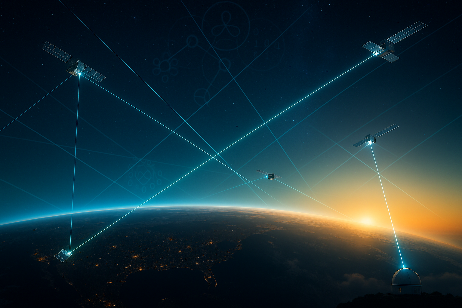 - Inter-satellite ranging/time-sync (e.g., optical two-way time transfer) and precise attitude control.