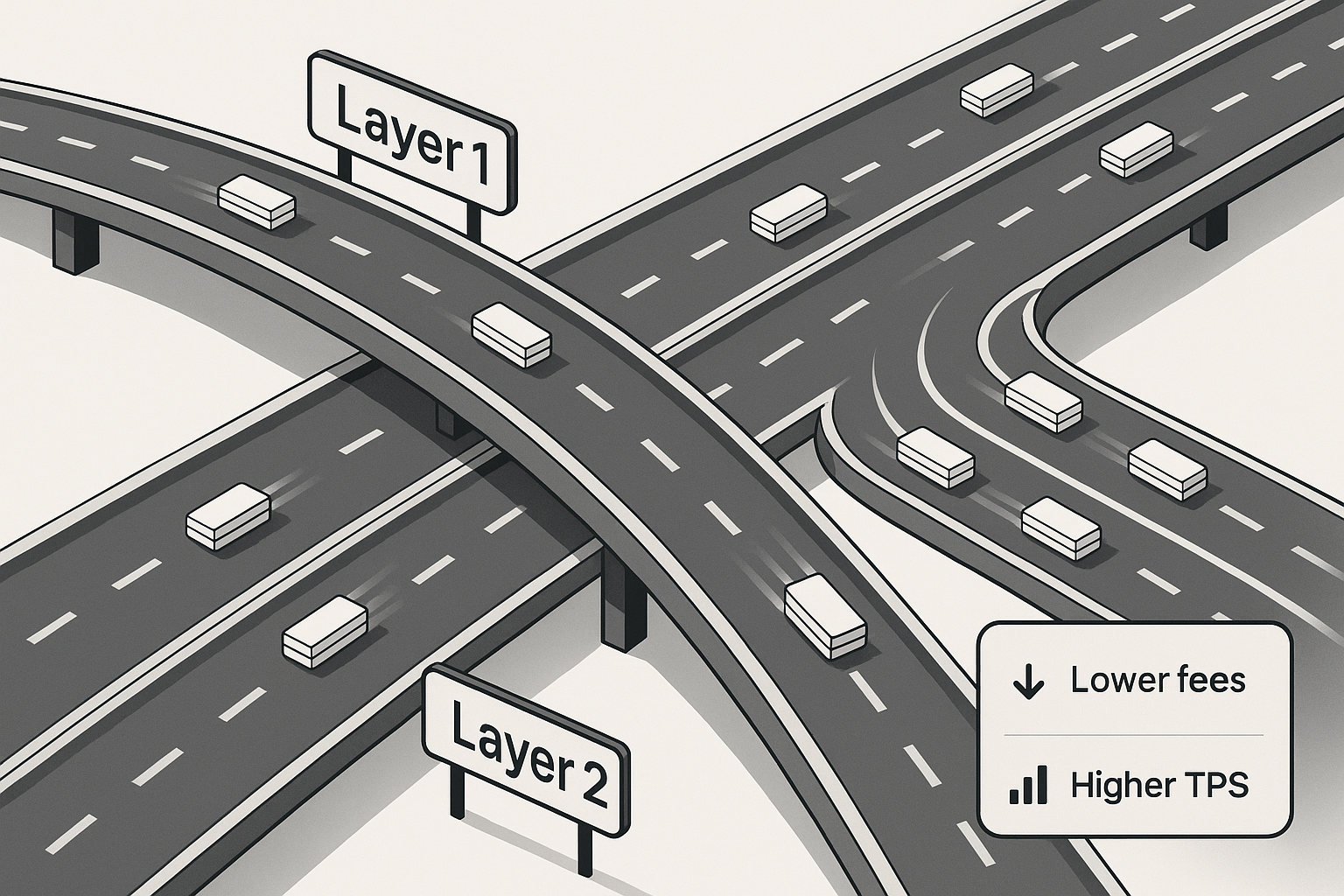 A Layer 2 is an auxiliary network that executes transactions off the base chain to improve performance, then posts compressed data or proofs back to Layer 1. You get lower fees and higher throughput while anchoring security to the base chain. The exact guarantees depend on whether the L2 uses fraud proofs (optimistic) or validity proofs (ZK).
