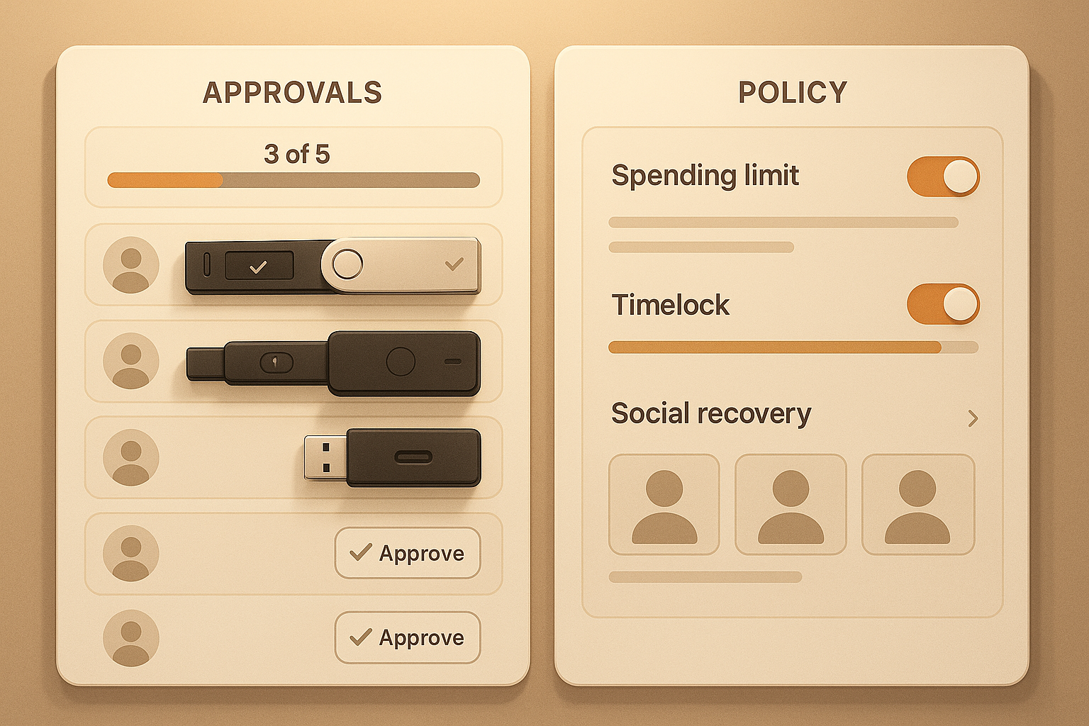 - For SCW policies, many teams mirror a 3-of-5 approval but add a 24–72 hour timelock on high-risk actions.
