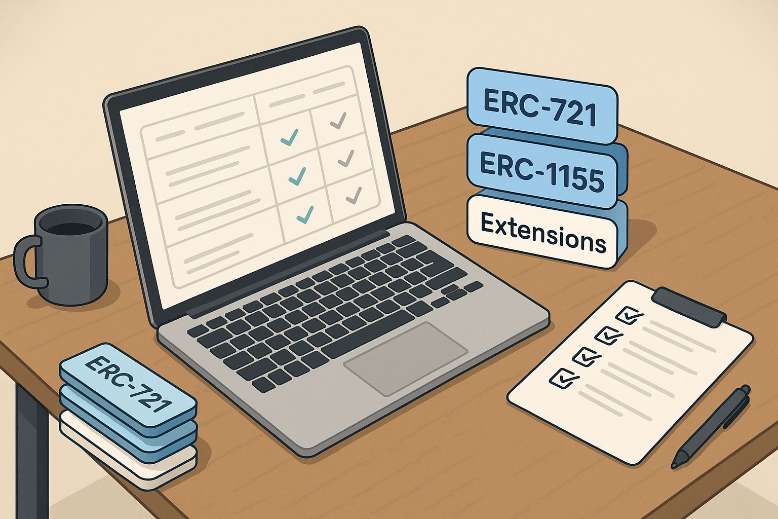 Quick answer: Use ERC-721 for purely unique items, ERC-1155 for collections with editions or in-game items that benefit from batch operations, and add extensions (2981, 4907, 3525, 6551, 2309, 4906, 5192) when you need royalties, rentals, semi-fungibility, token-bound accounts, efficient batch minting, metadata-change signaling, or non-transferable “soulbound” behavior.