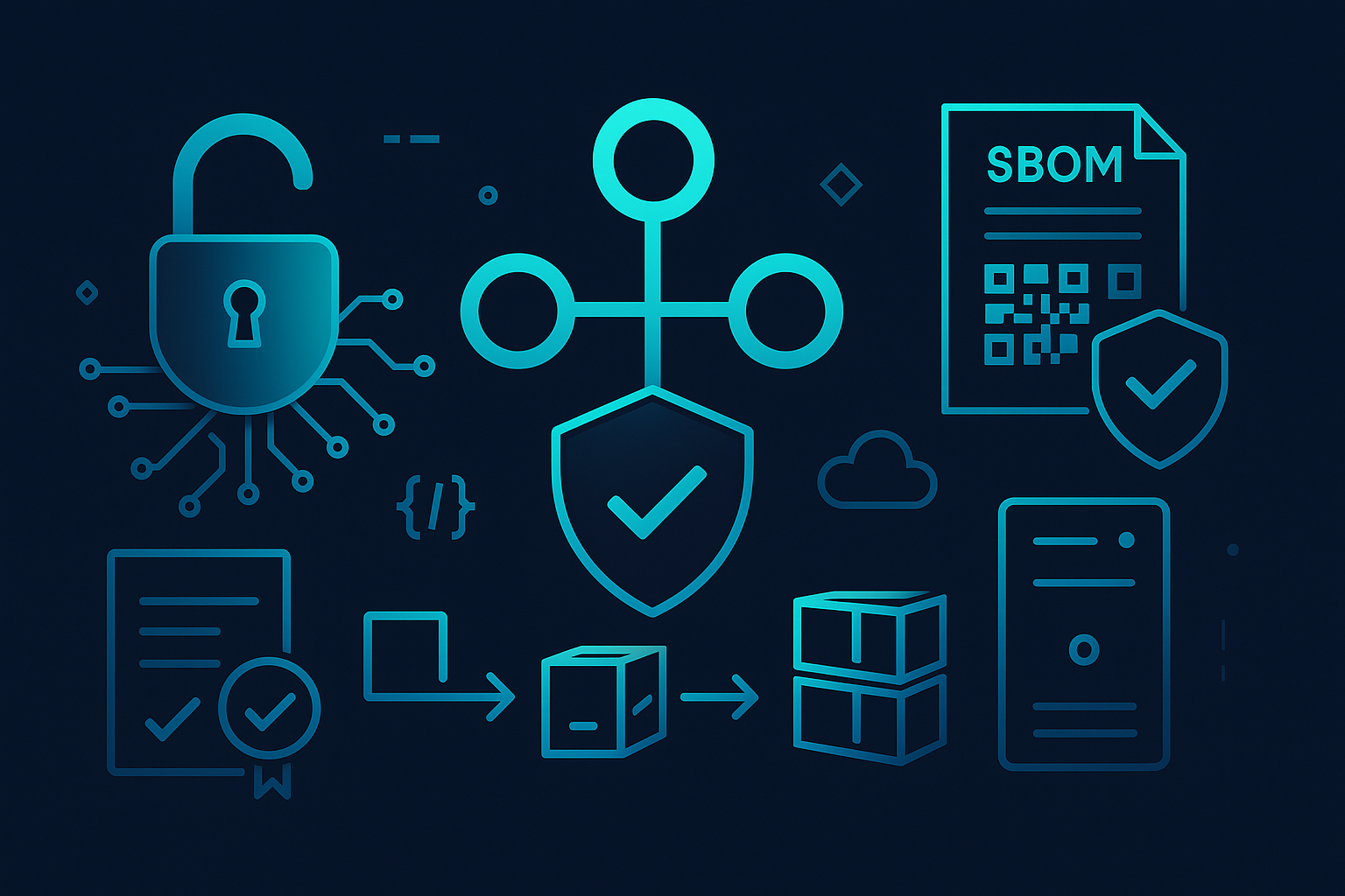 A Software Bill of Materials (SBOM) enumerates the packages, versions, and licenses in your software. SBOMs are the foundation for continuous visibility, faster vulnerability triage, license compliance, and incident response. Widely used formats include SPDX and CycloneDX—both interoperable, tool-friendly, and designed for machine consumption.