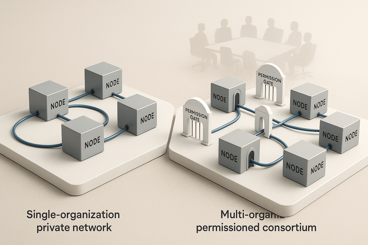 A private blockchain is best understood as a ledger that one enterprise owns and operates; participation is restricted by the operator, and consensus is typically under that operator’s administrative control. A permissioned blockchain, by contrast, is any ledger where participation—read, write, or validate—requires approval, usually granted by a consortium or governing body representing multiple organizations. Both models restrict access, but they differ in who grants permission and how authority is distributed. In practice, private often equals “permissioned, single operator,” while permissioned often equals “permissioned, multi-operator consortium.” This difference drives governance choices, compliance posture, and the credibility of on-chain records across parties who don’t share an IT department. If you need neutral ground between firms, permissioned usually fits better; if you need an internal audit-grade ledger, private is often enough. Understanding this distinction prevents confusion later in selection, architecture, and procurement.