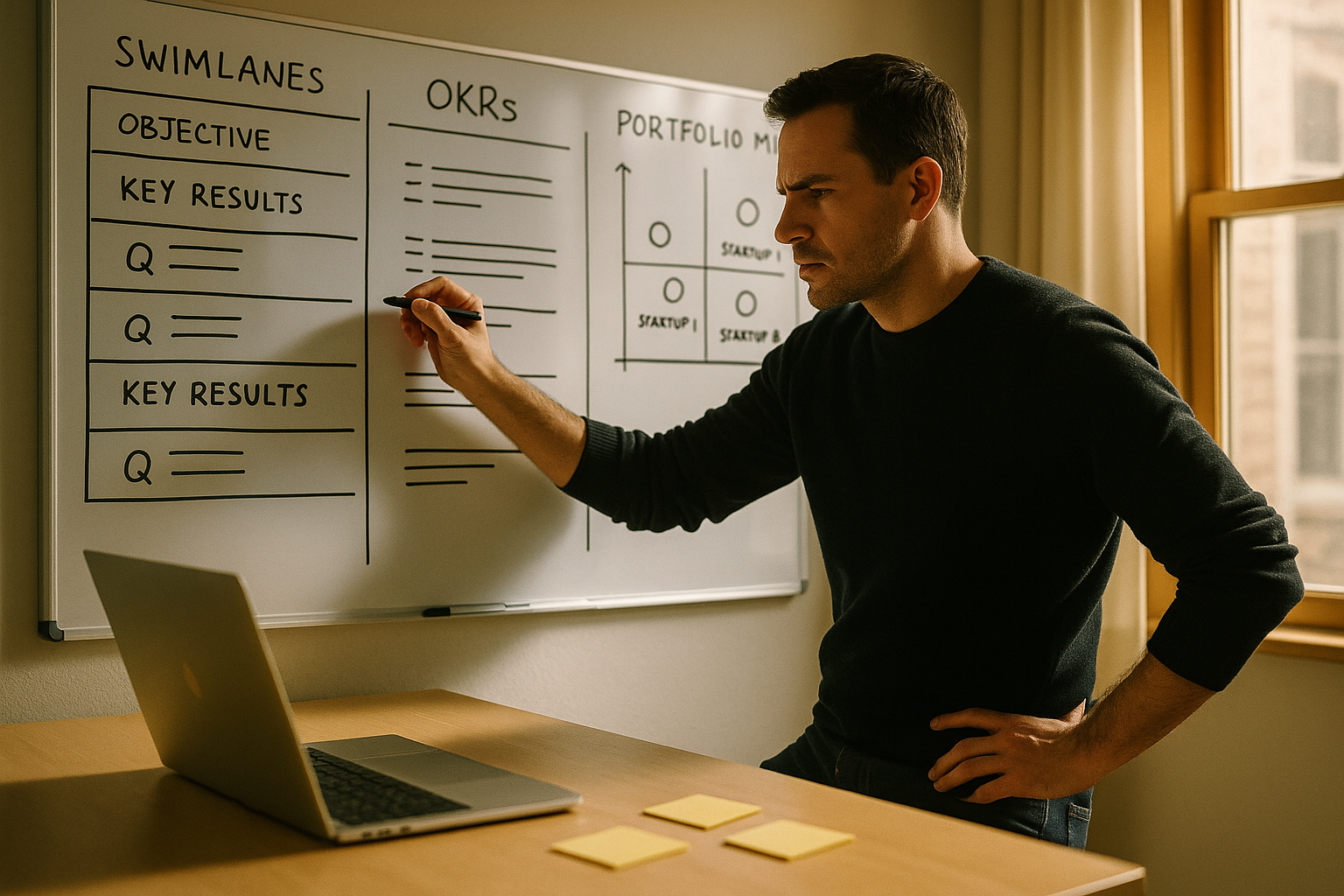 - Use OKRs for focus; roll up venture OKRs to a compact portfolio dashboard.